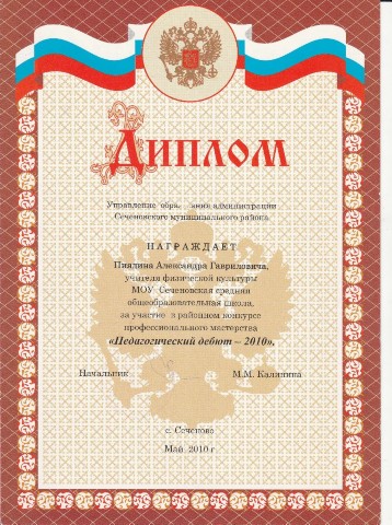 Диплом районного управления образования «Педагогический дебют-2010» |