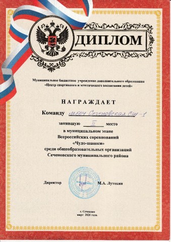 II место "Чудо-шашки", 2020г.